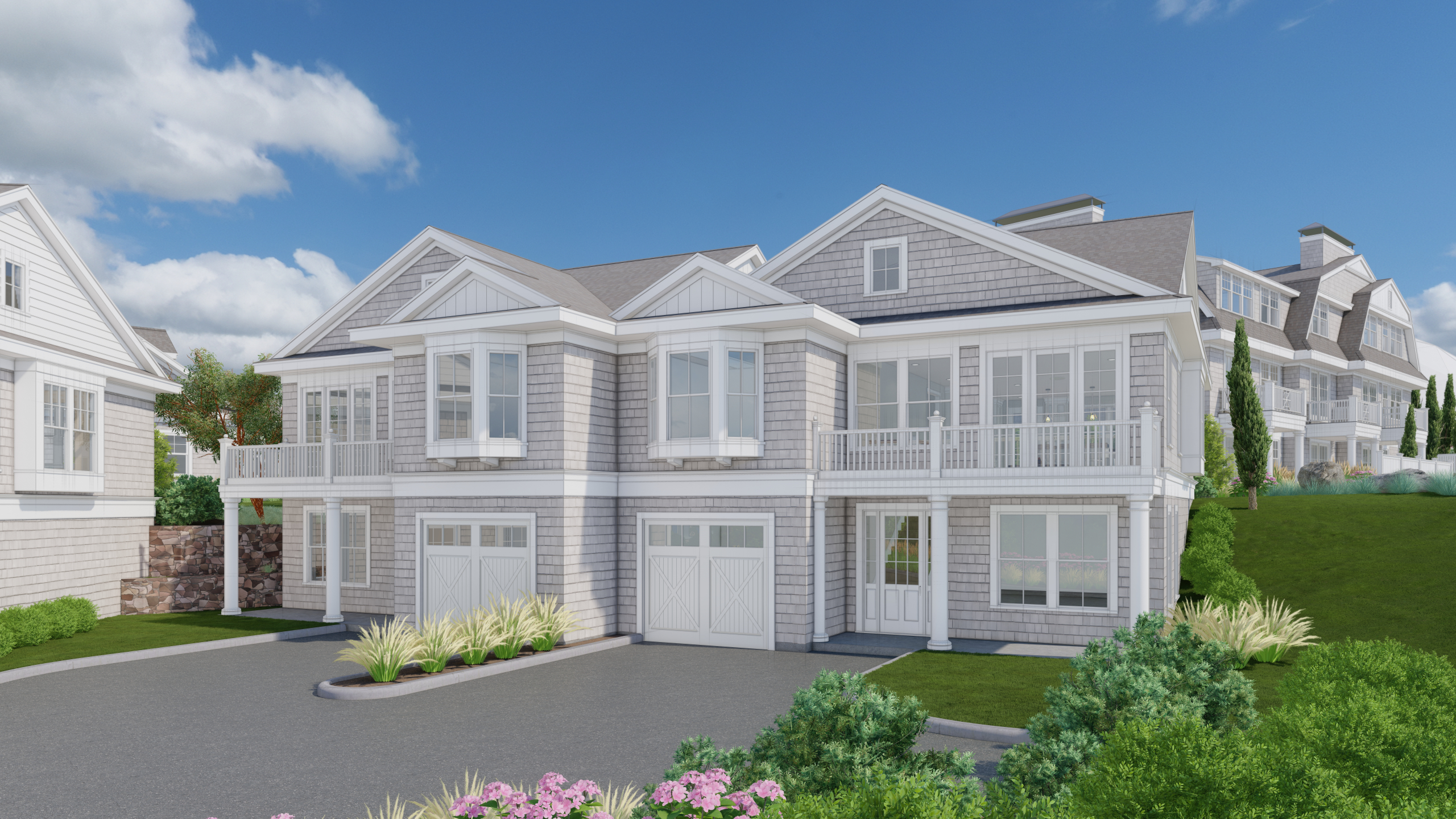 Lighthouse Station’s three duplex townhome buildings, B, C, and D, are located on a natural bluff above Woods Hole Road. Each residence is positioned and designed to maximize the property’s unobstructed ocean views of Vineyard Sound and Martha’s Vineyard. Large banks of windows ensure amazing natural light and sight lines without compromising privacy.