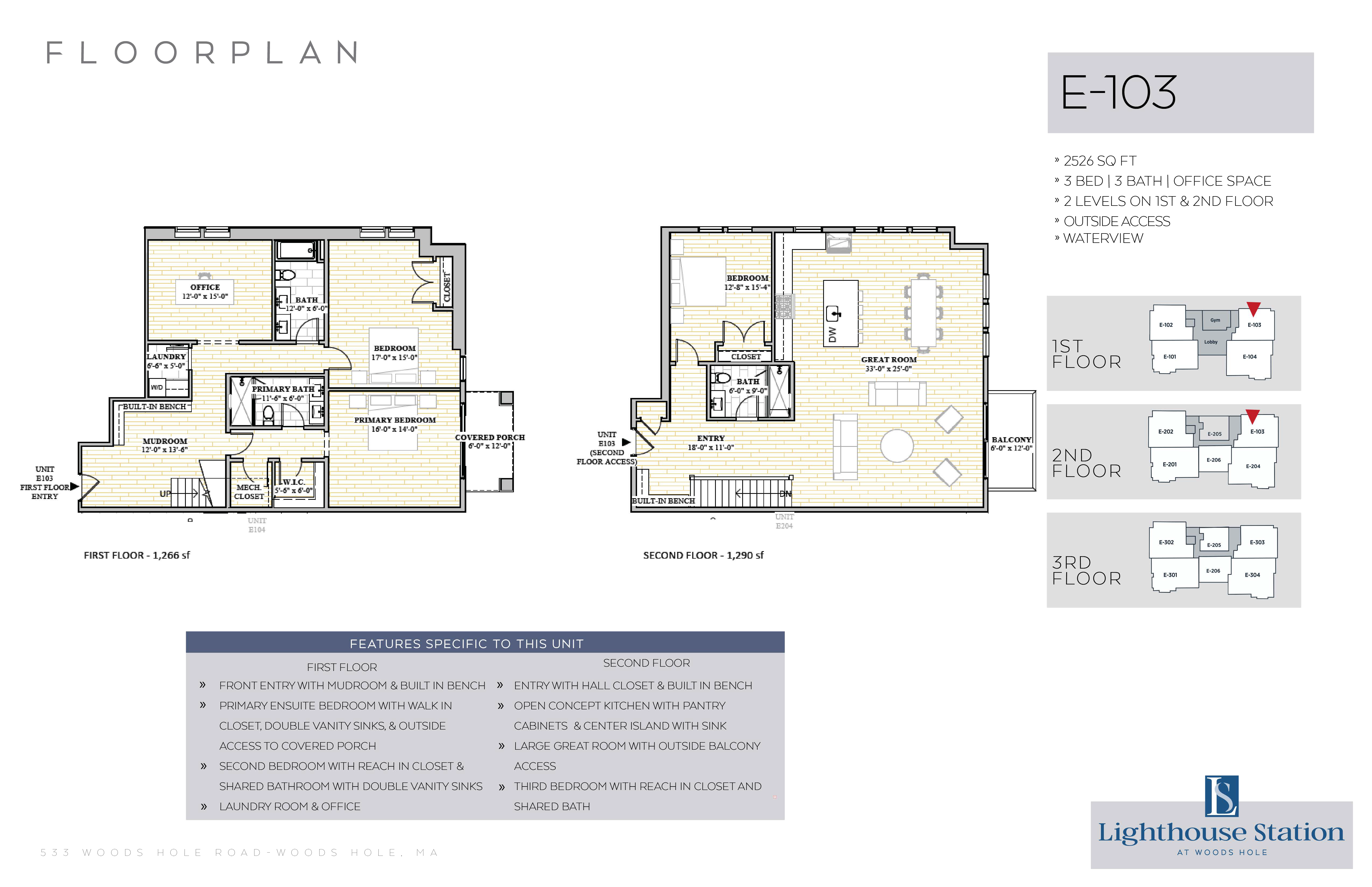 | E-103 | 3 Bed, 3 Bath | 2556 SQFT | 1st & 2nd Level | 2 Floors | |